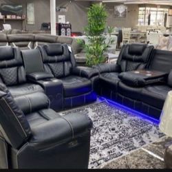 NEW ALEXIA BLACK LIVINGROOM POWER RECLINING SOFA LOVESEAT AND RECLINER WITH BLUETOOTH SPEAKERS AND USB PORTS LEDS LIGHTS $2,299Arlington, TX