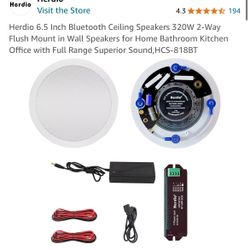 Herdio 6.5 Inch Bluetooth Ceiling Speakers 320W 2-Way Flush Mount in Wall Speakers for Home Bathroom Kitchen Office with Full Range Superior Sound,HCS$100Dallas, TX