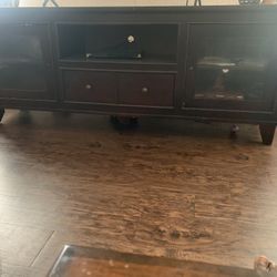 Wood tv stand with glass door big cabinets 54"x 19"x18" Cabinets are big for keep lots of stuff in it Solid wood tv stand Excellent condition$95Irving, TX