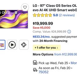 LG OLED G5 97ââtv$10,500Dallas, TX