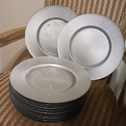 Twelve 13 5/16" Glass Silver Charger Plates$18Houston, TX