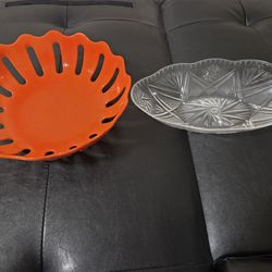 Fruit Bowls / Trays - Large Round Orange color and Transparent Oval$5Houston, TX