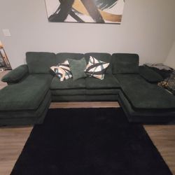 Elegant Double Chaise Sectional Sofa β Modern, Spacious, Deep Green$450Houston, TX