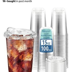 15 oz Clear Plastic Cups with Lids (10C Pack) - Strawless Sip Lids, Leak-Proof & BPA-Free Iced Coffee Cups - Disposable Cold Drink Cups for Smoothies $15Houston, TX