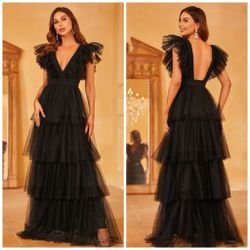 Jessica McClintock Slim Fit Dress Black Lace Back Zip Floral Design Maxi$35Crosby, TX