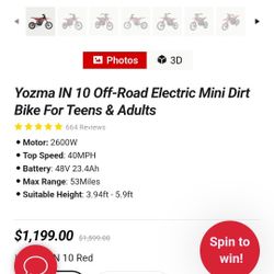 Yomoza 10 Off Road Electric Mini Dirt Bike$900Humble, TX
