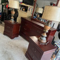 Dresser & mirror with 2 night stands and 2 lamps.$150Houston, TX