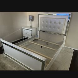 White upholstered bed frame with mirrored accents$100Sugar Land, TX