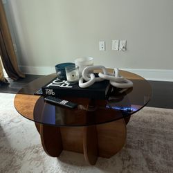 Round wooden coffee table with glass top$80Houston, TX