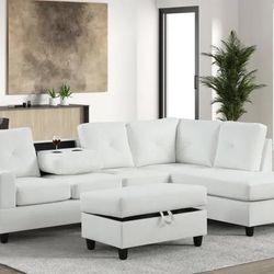 NEW White Reversible Sectional W/ DROP DOWN TABLE WITH CUPHOLDERS & Ottoman -FINANCE AVAILABLE$599Houston, TX