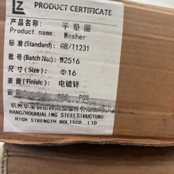 16mm / M16 Flat Washers, Zinc Plated, New – 850 Count$70Austin, TX
