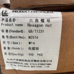 M16 Hex Nuts, Zinc Plated, New – 350 Count$30Austin, TX