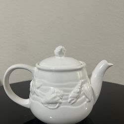 White Embossed Ceramic Teapot with Lid – $25Austin, TX