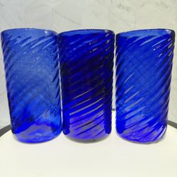 Set of (3) Handblown Cobalt blue Glass Tumblers Handblown Glass. Swirl Ridges. One Of A Kind. $59Austin, TX
