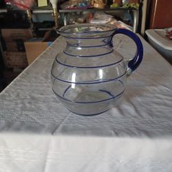 Vtg. Extra Large Mexican Hand-Blownswirl Novica Pitcher Cobalt Blue Rim And Blue Handle$45Taylor, TX