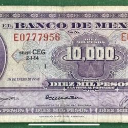 Billete De 🇲🇽 10000 Pesos 1978 Matías Romero ESCASO $90Mustang Ridge, TX