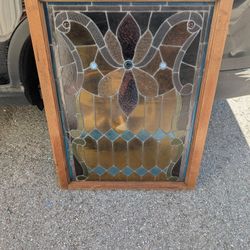 Architectural salvage antique stained glass window in antique wood window frame$350Georgetown, TX