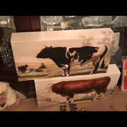 New On Canvas Pictures One Of A Kind Painted Cows In Detail! Great Decor!$25Austin, TX