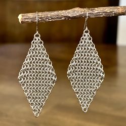 Large Stainless Steel Diamond-Shaped Chainmail Dangle Earrings$12Austin, TX