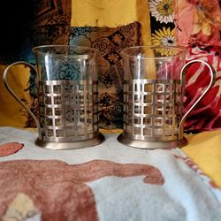 Vintage Mid-Century Style Glass & Metal Tea Cup Set (Pair)$10Austin, TX