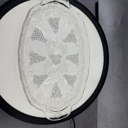 Set of (2) Vintage Indiana Pressed Glass Harvest Grape Crystal Serving Platters. 11.25β Anchor Hocking Grape Design Glass Luncheon / Snack Plates. $25Austin, TX