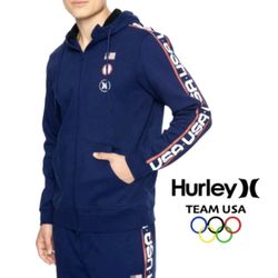 Hurley Navy Blue Therma-Fit Team USA Olympic Fleece Full Zip Hoodie Men's Large$25Round Rock, TX