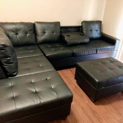 BLACK LEATHER SECTIONAL SOFA WITH OTTOMAN INCLUDED NEW (DELIVERY AVAILABLE )$699Austin, TX