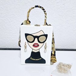 White bag lady women novelty face box clutch crossbody bag purse handbag gift