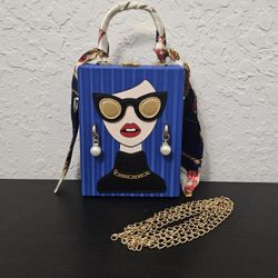 Blue bag lady women novelty face box clutch crossbody bag purse handbag Womens gift