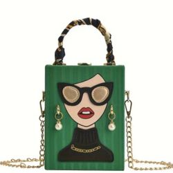 Green bag lady women novelty face box clutch crossbody bag purse handbag Womens gift