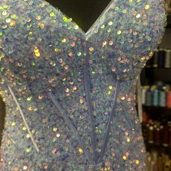 Blue and silver open back prom dress with slit$250Liberty Hill, TX