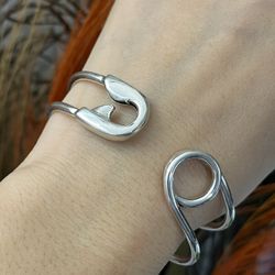 Unisex S925 silver big safety pin cuff bangle bracelet,Silver hearts bracelet,Silver irregular cuff bracelet,Everyday bracelet jewelry,Gift for her hi$24Austin, TX