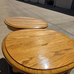 Solid oak, Ethan Allen pedestal tables. Cash Only$180Round Rock, TX