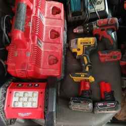 2 BATTERY CHARGERS MILWAUKEE & MAKITA & 2 DRILLS & 2 BATTERY'S & 1 LED LIGHT$1Austin, TX