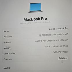 Apple Macbook Pro 13in 2020 1.4Ghz Quad-core Intel Core I5 256GB Space Gray$350Denton, TX