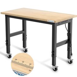 New box 48" Heavy-Duty Adjustable Workbench with Brake Wheels,Hardwood Worktable Weight Capacity Over 2000 Lbs,Rubber Wood Workbench has Adjustable 5 $149Mckinney, TX