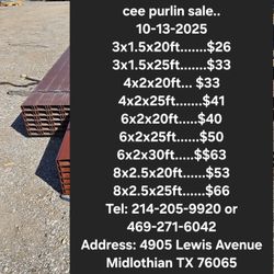 New 3x1.5x20ft Cee Purlins $26Dallas, TX