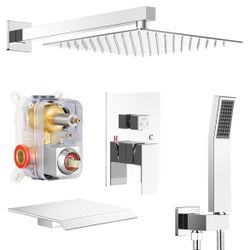 Qomolangma 12 inch Rain Shower System with Tub Spout, 3-Functions Shower Faucet Set with Pressure Balance Valve, Wall Mounted Bathroom Shower Systems/$120Dallas, TX