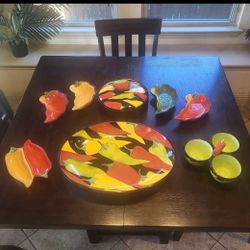 Clay Art "Caliente" Ceramic 8 Piece Large Oval Serving Platter & Salsa/Dip Bowls Set$95Forney, TX