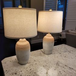 NEW set of 2 USumkky 24.5" Vintage Ceramic Lamps Farmhouse Rustic Bedside Lamp w/ Natural Texture$75Flower Mound, TX