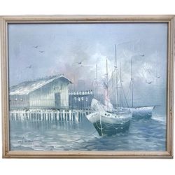 VTG Original Oil Painting Sailboat Dock Lake Ocean Nautical Artist Signed Framed$95Lucas, TX