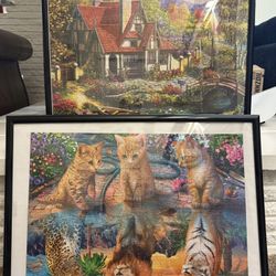 Set of 2 pazzle paintings with frames 28"x 21" each painting$40Irving, TX
