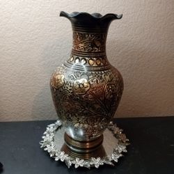 EXQUISITE VTG Black Enamel Brass 10" Royal Vase From Turkey