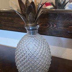 Vintage Pier One Rare Clear Glass Pineapple Decanter Metal Leaf Fronds Stopper$30Rockwall, TX
