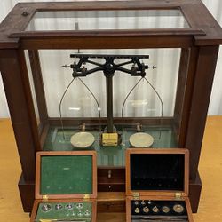Antique 1900’s solid walnut encased apothecary analytical balance scale by Schaar & Co.$250Grand Prairie, TX
