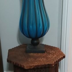 Vintage Blue Hand Blown Glass With Wrought Iron Base Dating Mid 20th century ,+ Carved & Inlaid Accent Table Base & Top Fitting Detailed Leaf Decorati$1,500Rowlett, TX