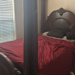 Queen size bed with dark wood frame$160Garland, TX