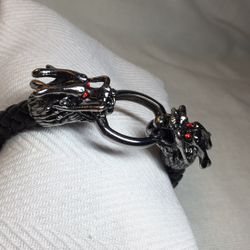 Double Dragon Head With Red Jeweled Eyes Black Braided Bracelet $14Mesquite, TX