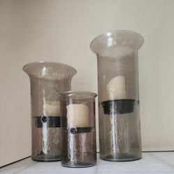 Set of 3 Glass Hurricane Candle Holders With Rustic Metal Trays$50The Colony, TX
