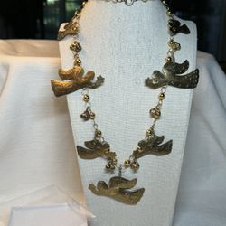 Vintage Artisan Milagro Etched Brass Flying Angel large Charm Necklace$45Dallas, TX
